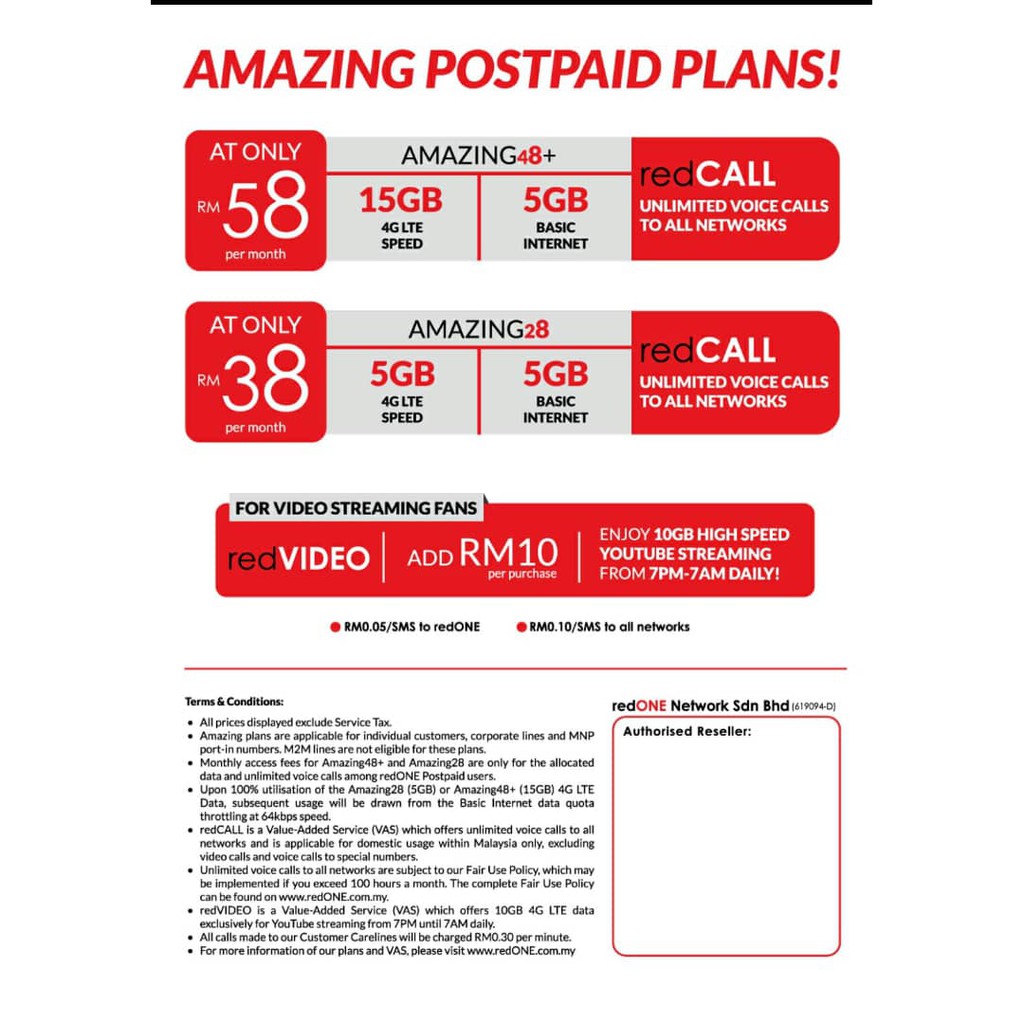 Amazing 38 Red One Postpaid Rm38 Per Month Mnp New Number Contact Seller Before Purchases Lazada