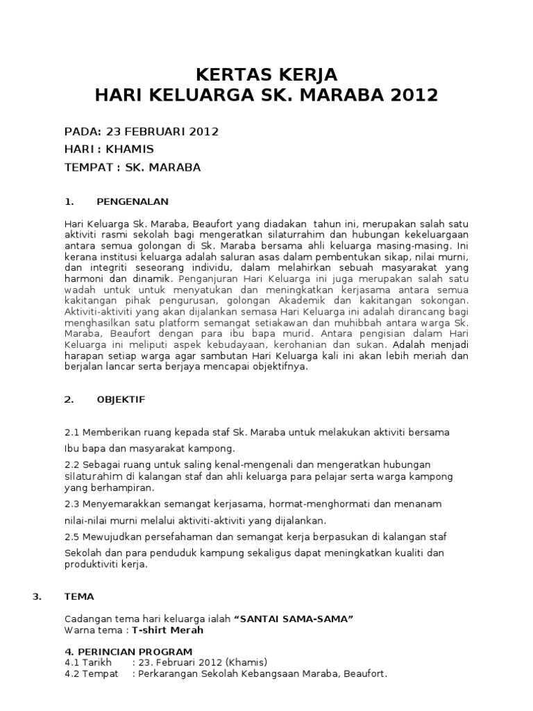 Kertas Kerja Hari Keluarga Pdfcoffee Com